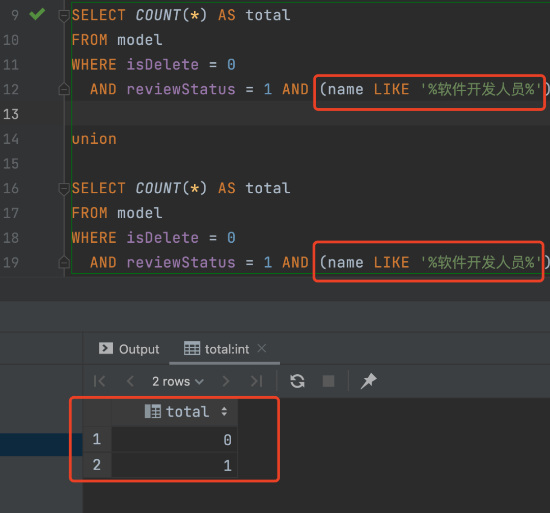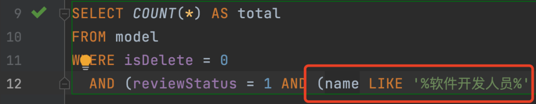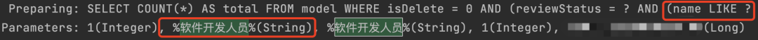 把参数拼到 SQL 语句模板中,就是 name like '%软件开发人员%',看上去没有任何问题。