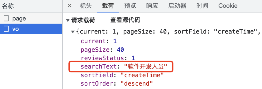 按 F12 打开网络控制台,发现搜索关键词传的没毛病: