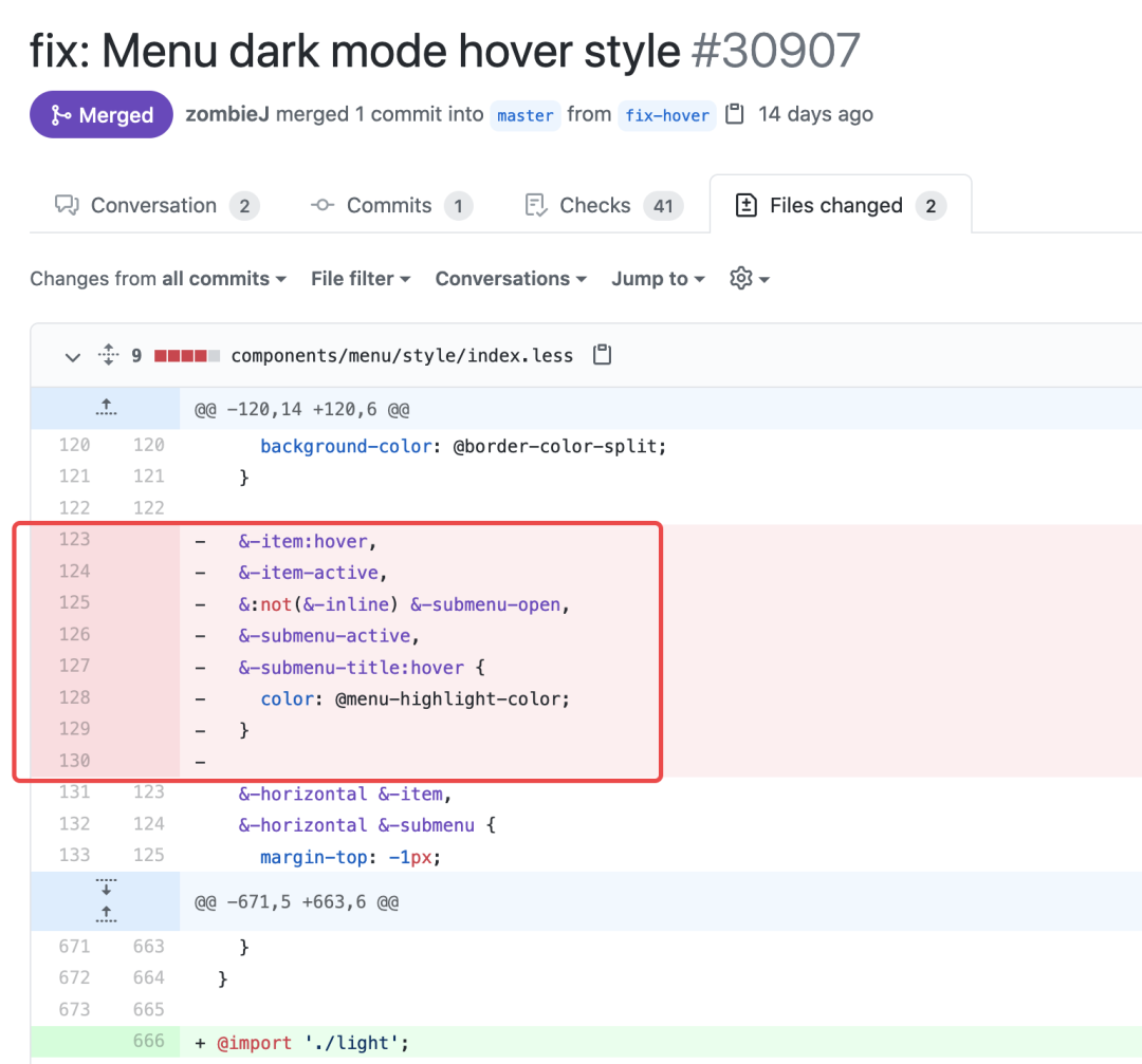 在这个列表中改动点还挺多,但我们只需要关心 Menu 菜单组件,所以很快找到了这一行: