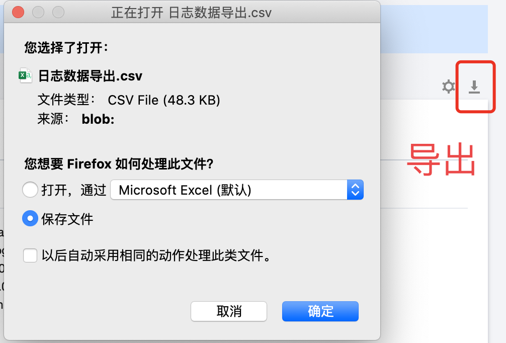 为了更灵活地分析,我们将日志导出到本地,使用 Excel 等表格软件打开它。