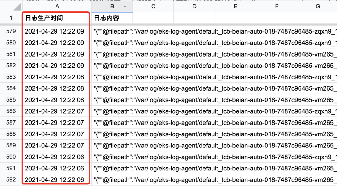 然后,我们来分析下日志,先看 日志生产时间 这列,即案发时间: