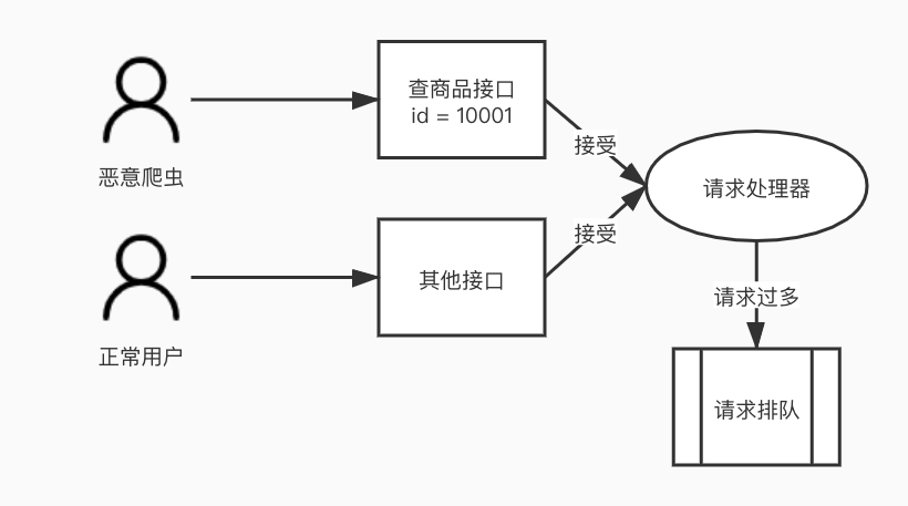 每个应用在单位时间所能接受和处理的请求量是有限的,如果受到恶意请求的攻击,让恶意用户独自占用了大量请求处理资源,就会导致其他人畜无害的正常用户的请求无法及时响应。